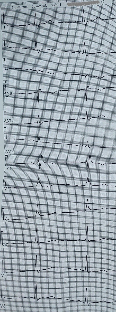 The patient had an electrocardiogram (ECG) investigation performed at the age of 38 years as a part of medical investigation while applying for a job at an educational institution – and claimed it was normal.