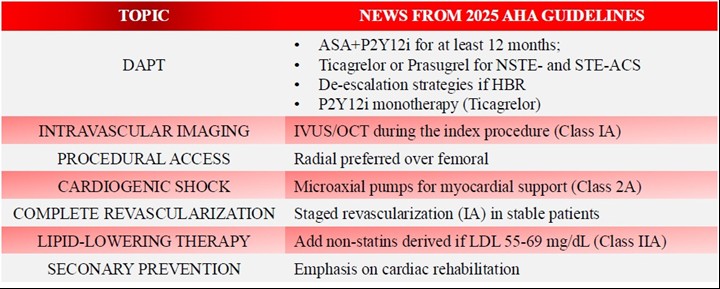 The recently released 2025 ACC/AHA guidelines for the management of acute coronary syndromes (ACS) arise from the need to unify and update all contemporary evidence regarding the diagnosis, risk stratification, and treatment of ACS.