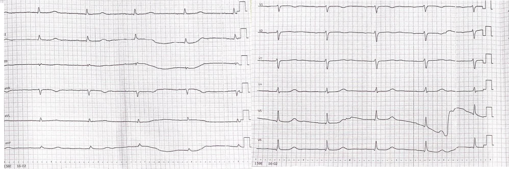 Figure 1. Electrocardiogram (ECG) tracing demonstrating sinus bradycardia and a prolonged PQ interval