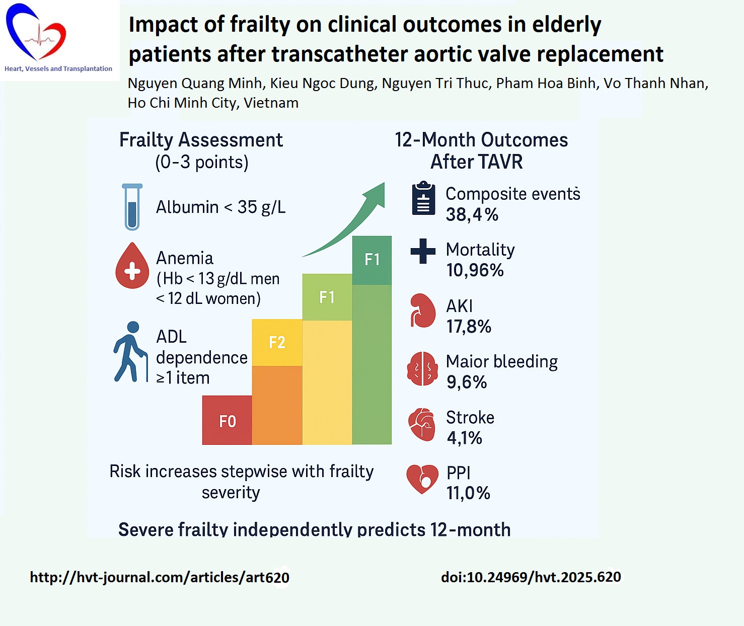 To address this gap, we evaluated a practical frailty assessment based on three routinely available clinical indicators—serum albumin, hemoglobin concentration, and dependence in activities of daily living (ADL). We hypothesized that this simplified multidomain score would effectively risk-stratify elderly TAVR candidates and identify individuals at increased risk of adverse outcomes. In developing countries, including Vietnam, older adults are commonly defined as individuals aged 60 years and above, according to WHO and national public health classifications. Therefore, our study population—comprising patients aged ≥60 years—corresponds to the locally accepted definition of the elderly. Differences in demographic structure and earlier onset of cardiovascular disease in Asian populations may also result in younger TAVR cohorts compared with Western countries.