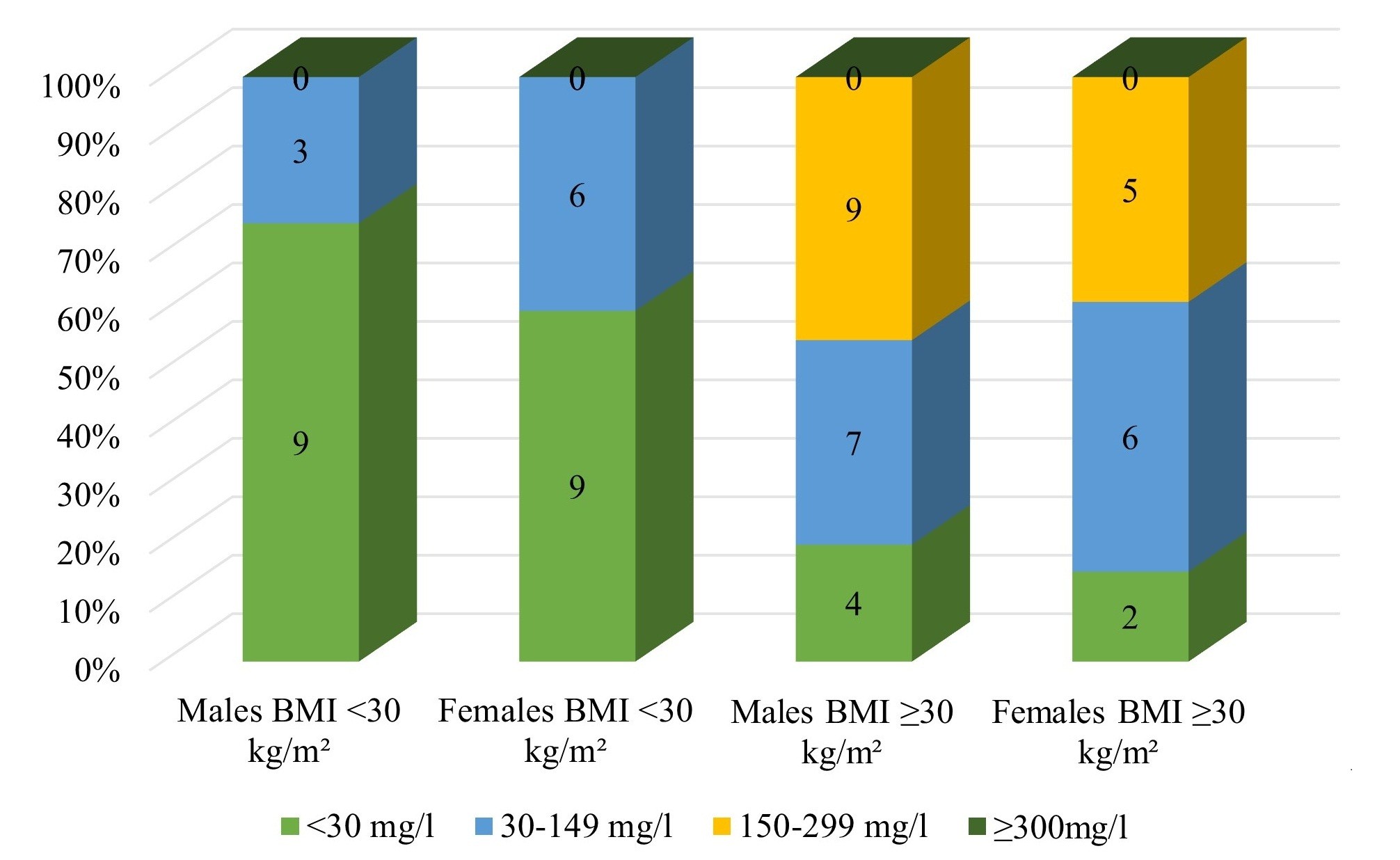 Figure 1. Male and female microalbuminuria levels depending on the degree of obesity
