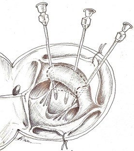 Figure 4. The threads pulled tightly cutting through the myocardium thickness
