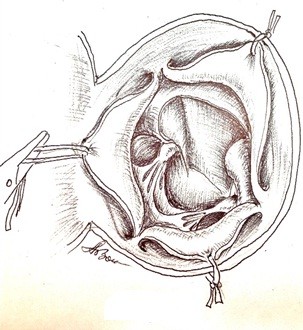 Method of septal myectomy in the surgical treatment of HOCM is depicted in Figures 1- 4.