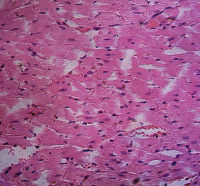 Figure 2. Cardiomyocytes of an intact rat, stained with hemotoxylin-eosin, ×400.