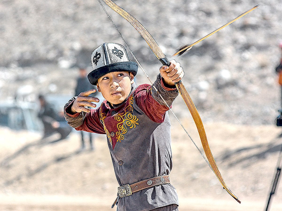 Historically, Kyrgyz nomadic culture developed a complex of physical activity, including the development of endurance (long journeys), functional strength (working with animals and farming), coordination and balance (horseback riding), playing skills (ordo, ak chɵlmɵk), and martial arts (kүrɵsh) (Fig. 1). From an early age, Kyrgyz boys were trained in horseback riding, swordsmanship, archery (Fig. 2), and foot and horse wrestling (2). These forms of physical activity served as a natural means of preventing many diseases and functional disorders characteristic of the modern lifestyle.