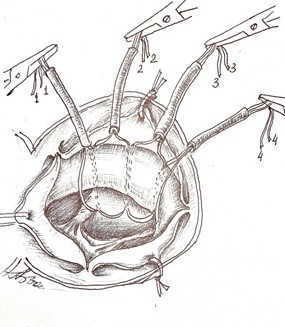 Figure 3. The needles are removed and the thread ends are taken on a tourniquet