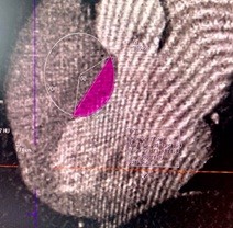 In the process of studying pathology on a computed tomography (CT), we obtain images (scans). Using the CT software, we can determine the radius of the hypertrophied part of the IVST (Fig. 6), and we can also draw and measure the line of the proposed excised part.